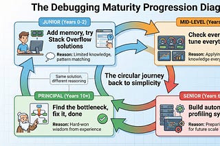 How engineers progress through trial-and-error, analysis paralysis, and over-engineering before earning the wisdom to find the one bottleneck that…