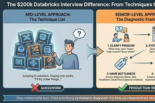 Why listing optimization techniques proves you're mid-level, and the diagnostic framework that demonstrates production-grade thinking
