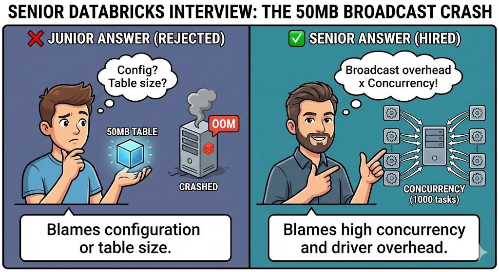 Senior Databricks Interview: ‘I forced a Broadcast Join on a tiny 50MB table. The driver crashed with OOM. Why?’