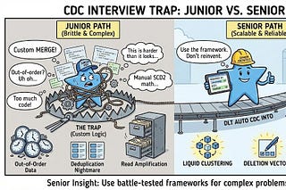 Why custom MERGE logic is the trap, and how AUTO CDC + Liquid Clustering is the senior answer that wins FAANG offers